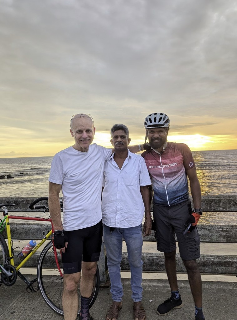 Even in the ‘winter’ months, temperatures on the Konkan coast are fierce. Most days in October, we cycle in 3O C heat; today peaks at 36C. Sunset is a balm, and we’re hungry.